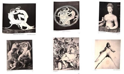 Book Condition: Very Good, with some slight foxing to first 4 pages and last two pages. No Dustjacket allegedly due to the previous owner (a retired presbyterian vicar) wrapping the book in another DJ (Mein Kampf) to avoid unwanted attention whilst commuting by bus in Ramsgate. Profusely Illustrated (illustrator). Tan Boards, gilt Type. "Clean", bright, tight copy. No inscriptions.128 pp including index. First. 4to - over 9¾" - 12". 127 pp, numerous plates illustrating chapters on Sex, religion and art; Greece and Rome; the Renaissance; from Rubens to the 19th century; erotic art today and tomorrow and EVERY DAY! Carr discusses the use of the nude within Christian art, which is frequently used for scenes depicted Adam and Eve. Although very little of the genitals is indicated, I interpret a lot of the surrounding imagery to be very phallic symbolic, particularly the serpent which often surrounds or entwines Eve. Yonic symbols are also present, such as the strategically placed Iris flower in Hugo Van Ger Goes’ depiction of the scene. Carr describes the prim and prudish attitude that the Church had towards sex, not just through its artistic biblical interpretations but also condemning the amount of sexual intercourse married couples can engage in. “ The Church took it upon itself to condemn sexual intercourse for married people on Fridays, Sundays, Wednesdays, the many Saints’ days, forty days before Christmas and forty days before Easter, and for three days before attending Communion. More than half the year was thus made sexless.” – Francis Carr 1972. The renaissance allowed a freer approach for artists to portray the female form. Although, generally speaking, the majority of the artists would keep the genitals concealed, there was much more sexual expression in these works. Visible sexual attraction is visible between characters on the canvas, and a times projected onto the viewer. For example, Although Susanna and the Elders by Tintoretto doesn’t show anything particularly sexual, the partial glimpse of the vulva probably made it rather raunchy for the time. This is echoed through the subject’s cheeky expression that she points outwardly and gives the viewer, showing no shame for her nudity. This painting shows awareness and liberation. There are other examples Carr gives which almost begin to become humorous and slightly crude, such as The Duchess of Villars. Most of the illustrations in this book show the artist extolling the simple joys of heterosexual love. Two additional subjects will be found. Some paintings of love between women have been included, not only as portrayals of homosexual love, but also because the female body is the ideal symbol of beauty. “The inclusion on the same canvas of two of these ideal symbols can be regarded as the portrayal of the mutual emotions of beauty and love felt by two people whether they are of the opposite sexes or of the same sex. Such a painting can be seen as the artist’s attempt to intensify the quality of beauty, visual and emotional, by using two women instead of one. “ -Francis Carr 1972.