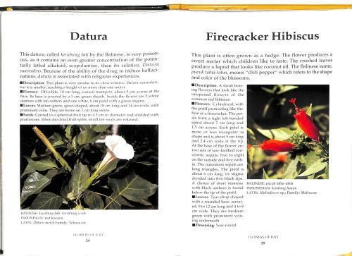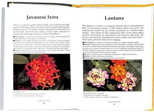 Book Condition: Near Fine. 64pp, stunning color illustrations, octavo pictorial boards. Tropical Bali is justly renowned for her many natural charms. This book is an introduction to the colorful and exotic blossoms that grace the island. The book describes more than 50 species - each photographed in full color - and offers a range of fascinating information on the cultural uses of the flowers, as well as physical descriptions of the plants and blossoms. Concordances of Balinese and Latin names can be found at the back.