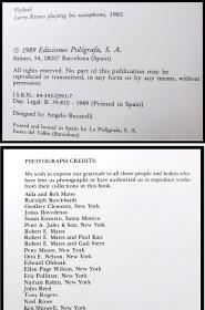 Arthur A. Bartley, New York, 1989. Issued by Ediciones Poligrafa S.A. - Barcelona. Near Fine in Near Fine DJ in protective mylar wrapper. Hard Cover. First Edition. Profusely illustrated. A large and heavy book, unmarked and in excellent condition. Coloured images are of lithographic quality. 29 x 25 x 3.5 cm - 2250 g. Rivers, Larry (illustrator). 400 illustrations, including 155 full color plates. 358pp., thick 4to, boards. Book on the complete work of Larry Rivers by Sam Hunter, the deceased art historian, who over six decades could usually be found at the center of some of the most exciting times for art in New York and beyond. He was an art historian (an authority on 20th-century art), a museum director, a curator, an art critic and an art adviser to museums, corporations and private collectors.