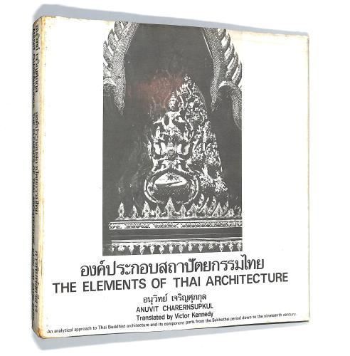 Book Condition: Very Good with Very Good DJ, shows signs of shelf wear and which has been sellotaped for protection along the length of the Spine. Anuvit Charernsupkul, The Elements of Thai Architecture, translated by Victor Kennedy (Bangkok, Karn Pim Satri Sarn, 1978), 142 pages, 61 plates. Prof.Anuvit, who holds a degree in architecture from Rice University in the United States and who is obviously well versed in the ways of Western architectural theory, has attempted in this small volume to analyze various aspects of traditional Thai religious architecture, partially, at least, from a Western viewpoint. Unlike most Western architects, the author views Thai architecture (which for him includes, bot, wihan [congregation halls,] and prang [stupas displaying Khmer influence],as "less of an architectural form, or even a structural form than it is a sculptural form created out of its architectural components:" These components are all ornamental -a "dressing"-and each is discussed individually, chapter by chapter. In addition to chapters on sema stones (physically disconnected from the structures they surround) and the ceiling medallions mentioned above, there are chapters devoted to eaves brackets (which, the author informs us, are non-structural); gables (the components "for which fine ornament is given its clearest display"); door ornament; and mural design. The Elements of Thai Architecture does include a number of interesting photographs and a remarkable accumulation of information about Thai architecture not normally available to English readers. Some caution must de taken with Prof. Anuvit's dates. For example, several architectural works usually, and correctly, I think, attributed to the Ayutthaya period,are here given Sukhothai period dates. But Prof. Anuvit is much more concerned here with architecture that falls outside the spectrum usually considered in the classic works on Thai art history. And \nherein lies the value of the book. Regional works from all over Thailand -from Lanna to Nakhon Phanom to Nakhon Si Thammarat-are included, and Prof. Anuvit's respect for popular taste as a determinant of architectural styles is worth considering. The author's special interest in the foreign is also evident throughout the book. For instance, we are told about, and shown a photograph of, a Buddhist deity in the guise of a male European; a sema stone displays "Mediterranean" influence; and the use of Chinese ceramics as architectural embelishment is frequently mentioned. While one cannot claim that these things constitute the mainstream of Thailand's architectural history, they are interesting, and it is a pleasant surprise to find them included here.