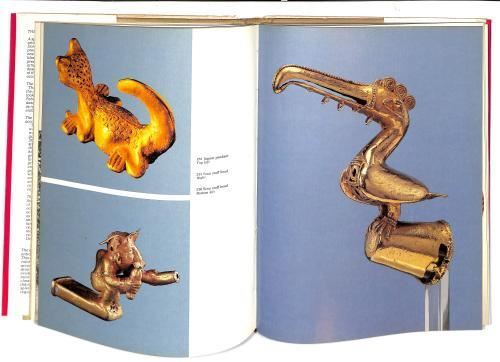 Shelf wear to DJ, some small nicks at top and bottom of spine, otherwise very good condition with clean. clear text and tight binding. From dust jacket notes: "A spectacular example of ancient Colombian artistry in gold-working, the fabled Gold of El Dorado is one of the dazzling collections of the previous works of ancient civilizations. Thirty-one pages of superb color plates and hundreds of black and white illustrations in this volume present the extraordinary ceremonial objects, artifacts and tools of everyday life, beautifully designed and crafted, amplified by the full story of the legend of El Dorado and a descriptive account of the gold itself...."