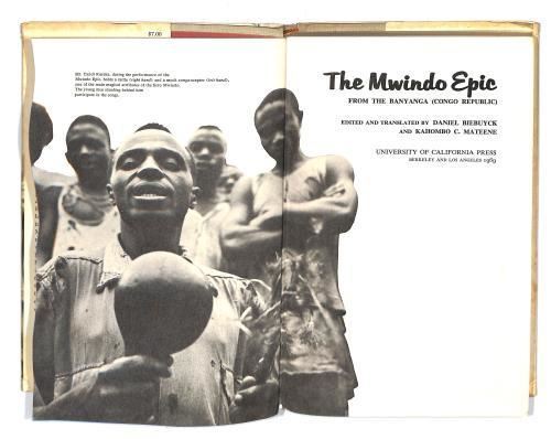 Some signs of shelf wear to DJ, small nick at bottom of DJ on spine, some slight age related yellowing of pages can be noted, otherwise clean, clear text in a tightly bound book. The feats of the hero Mwindo are here glorified in the bilingual text of an epic which was sung and narrated in a Bantu language and acted out by a member of the Nyanga tribe in the remote forest regions of eastern Zaire. Admirably structured, coherent, and richly poetic, the epic is in prose form, interspersed with song and proverbs in verse. An example of the classic tradition of oral folk literature, the tale has important implications for the comparative study of African culture, as the text provides profound insights into the social structure, value system, linguistics, and cosmology of this African people.