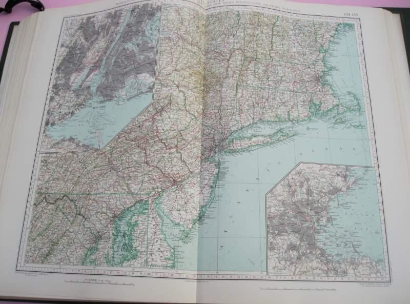 In 4ฐ gr., Legatura editoriale Mz. Pelle con titoli oro al dorso e al piatto, pp. XVI, 258 + 173 carte, anche ripieg. ,Milano, T.C.I. (Officine Grafiche Ricordi), MCMLVI [1956]. Atlante - touring club italiano - edizione del sessantennio - 1956 - solo il primo volume: "ษ l'atlante" - dimensioni 33 x 50 centimetri - 173 tavole (molte ripiegate nel testo) - imponente volume, splendida opera dell'ufficio cartografico del t.c.i. bellissime carte, finemente dettagliate e ricche di particolari, impresse su carta forte. quasi ogni carta comprende inoltre una o pi๙ carte minori: aree urbane importanti, arcipelaghi, isole. fondamentale repertorio geografico alla metเ del sec. xx. - solida legatura originale in piena tela, dorso in metallo con cerniere, titoli in oro al piatto. 33 x 49, bella rilegatura in finta pelle editoriale, titoli in oro al piatto e sul dorso, bs., pp. 173 + centinaia di smaglianti carte a colori. Indice prezioso incorporato nel librone di pp.258 - Edizione di lusso in occasione del sessantennio . Nell'ottobre 1956 per la celebrazione del 60o (8 nov 1894 - 1954) iniziavano le dispense di questa poderosa ed assai documentata opera. Questo volume e lo splendido risultato finale.